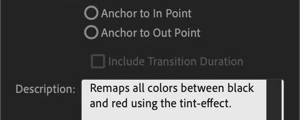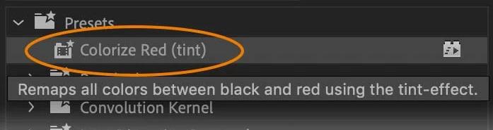 Add a description if you like, such as: “Remaps all colors between black and red using the Tint effect.”You’ve just saved time for future you! Every time you need this custom tint, it’s there, ready to go.